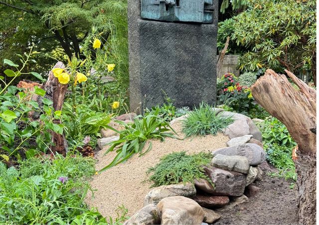 Auf dem Grab finden sich u.a. Centaurea jacea (Wiesen-Flockenblume), Daucus carota (Wilde Möhre), Tussilargo farfara (Huflattich) und Plantago lanceolata (Spitzwegerich). Insekten brauchen Lebensraum, Nahrung, Nistmöglichkeiten und Überwinterungsplätze. Deshalb gibt es bei dieser Grabgestaltung auch reichlich Totholz, ein Sandarium und sogar eine Mauer, die mit Sempervivum (Hauswurz) bepflanzt ist und Insekten und Eidechsen Unterschlupf bietet.