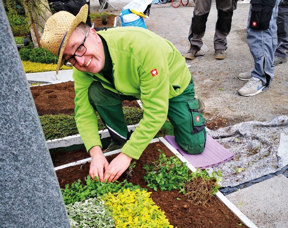 Wie rund ca. 60 Friedhofsgärtnereien aus ganz Deutschland hat nämlich auch unser Chef Torsten Stückert – selbstredend mit tatkräftiger Unterstützung unseres gesamten Teams – sein Können auf der diesjährigen Bundesgartenschau in Heilbronn unter Beweis gestellt. Das Thema Grabgestaltung bzw. der friedhofsgärtnerische Ausstellungsteil ist auf allen Gartenschauen ein Publikumsmagnet, weil hier die meisten Pflanzen pro Quadratmeter gepflanzt und die präsentierte Pflanzenvielfalt einfach enorm ist. So war es auch in Heilbronn. Wir haben dort ein Urnenwahlgrab gestaltet. Das uns vorgegebene Thema lautete „Mehrere Teile ergeben ein Ganzes“. Als wir den dazugehörigen Grabstein gesehen haben hatten alle im Team sofort „Tetris“, das legendäre puzzelartige Computerspiel, im Kopf. Damit war die Basisidee für unsere Grabgestaltung geboren und alle haben fleißig mitgewirkt, um diese zum Erfolg zu bringen.
